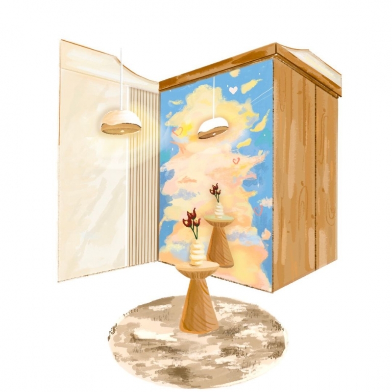推測本島的島民們就如同透過百葉窗的明亮陽光一樣給人溫暖的氛圍,充滿儀式感的在島上生活...